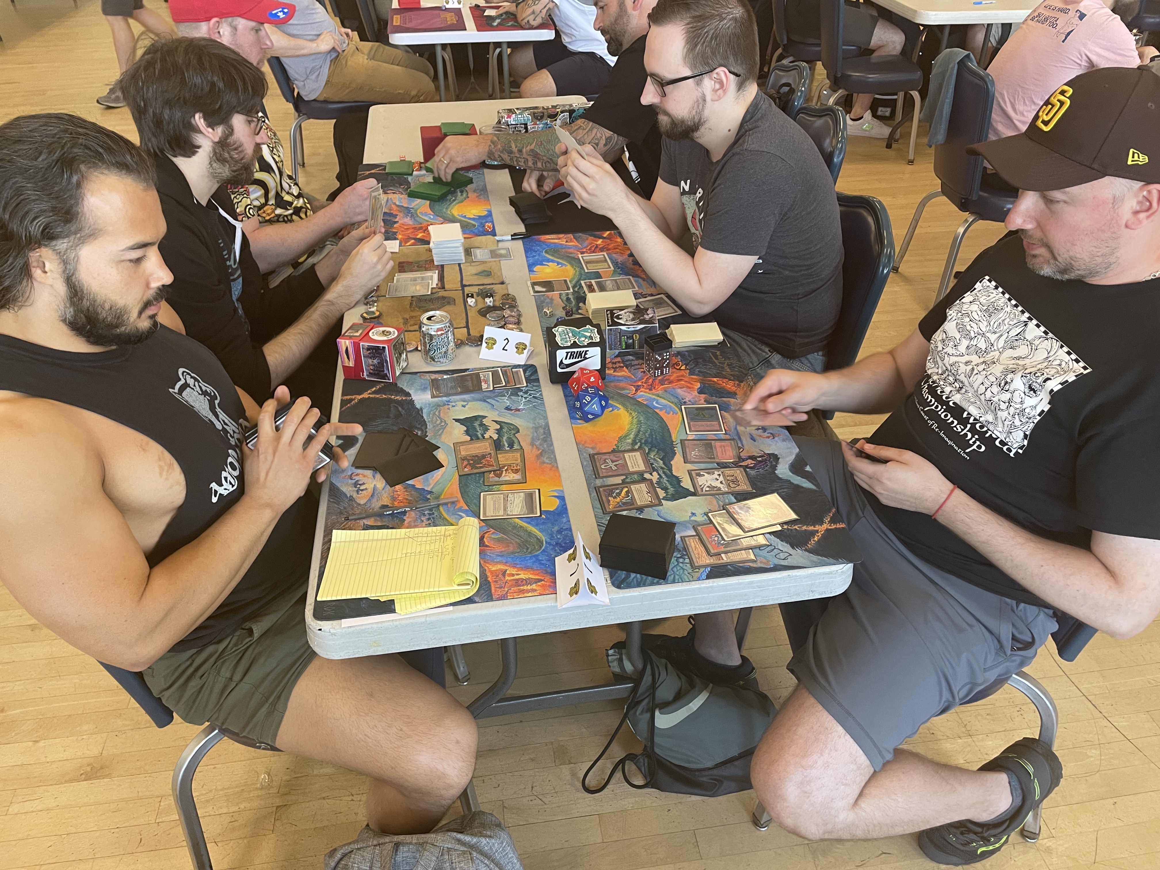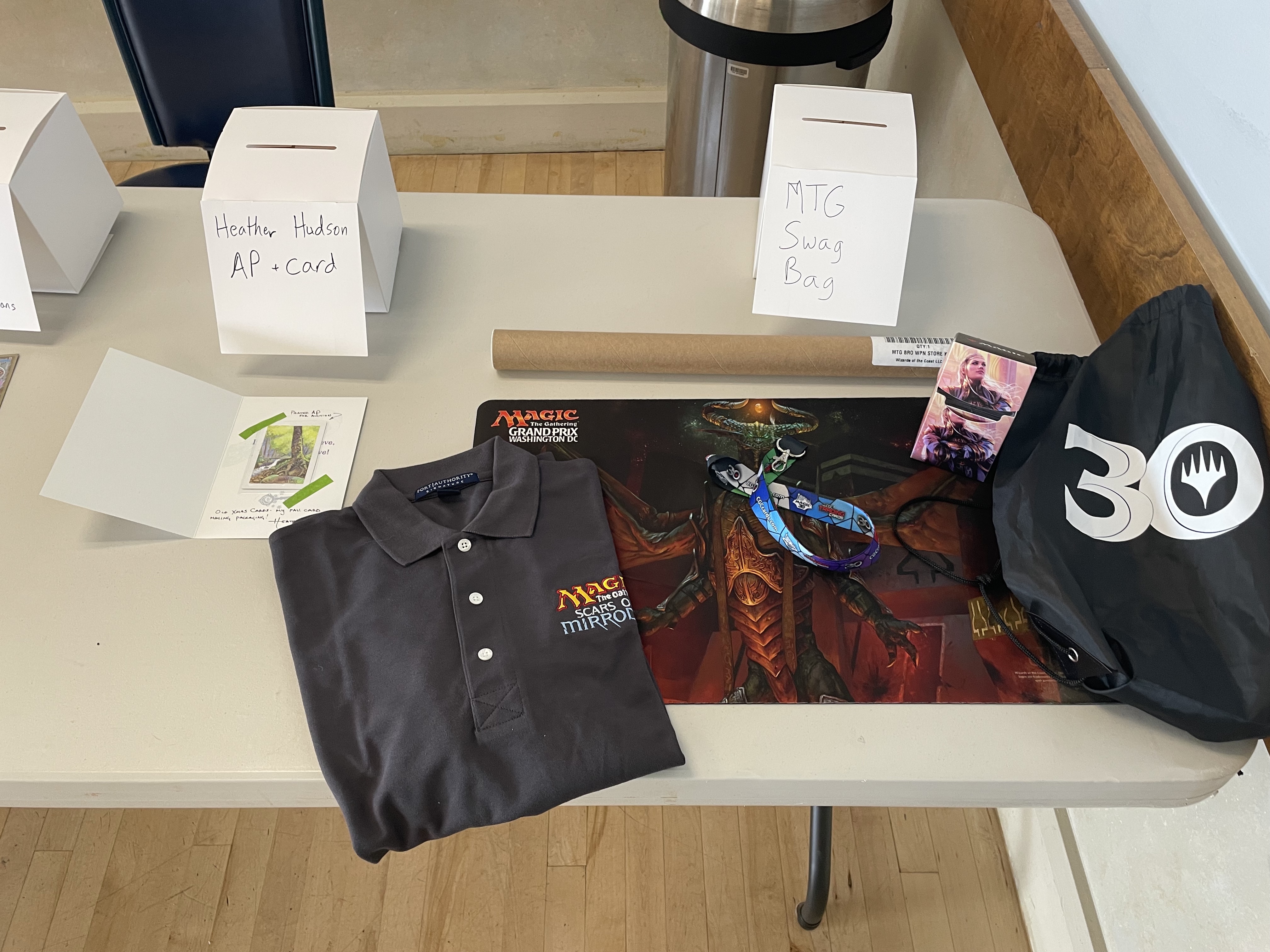 Below, I'll discuss both days, share some photos, and finally share results and decklist photos. But first, I want to announce we have thus far raised $3,125.65 for Mary's Place. That total may go up as we continue to sell of the extra playmats and Gods cards, and this page will be updated if and when that happens.