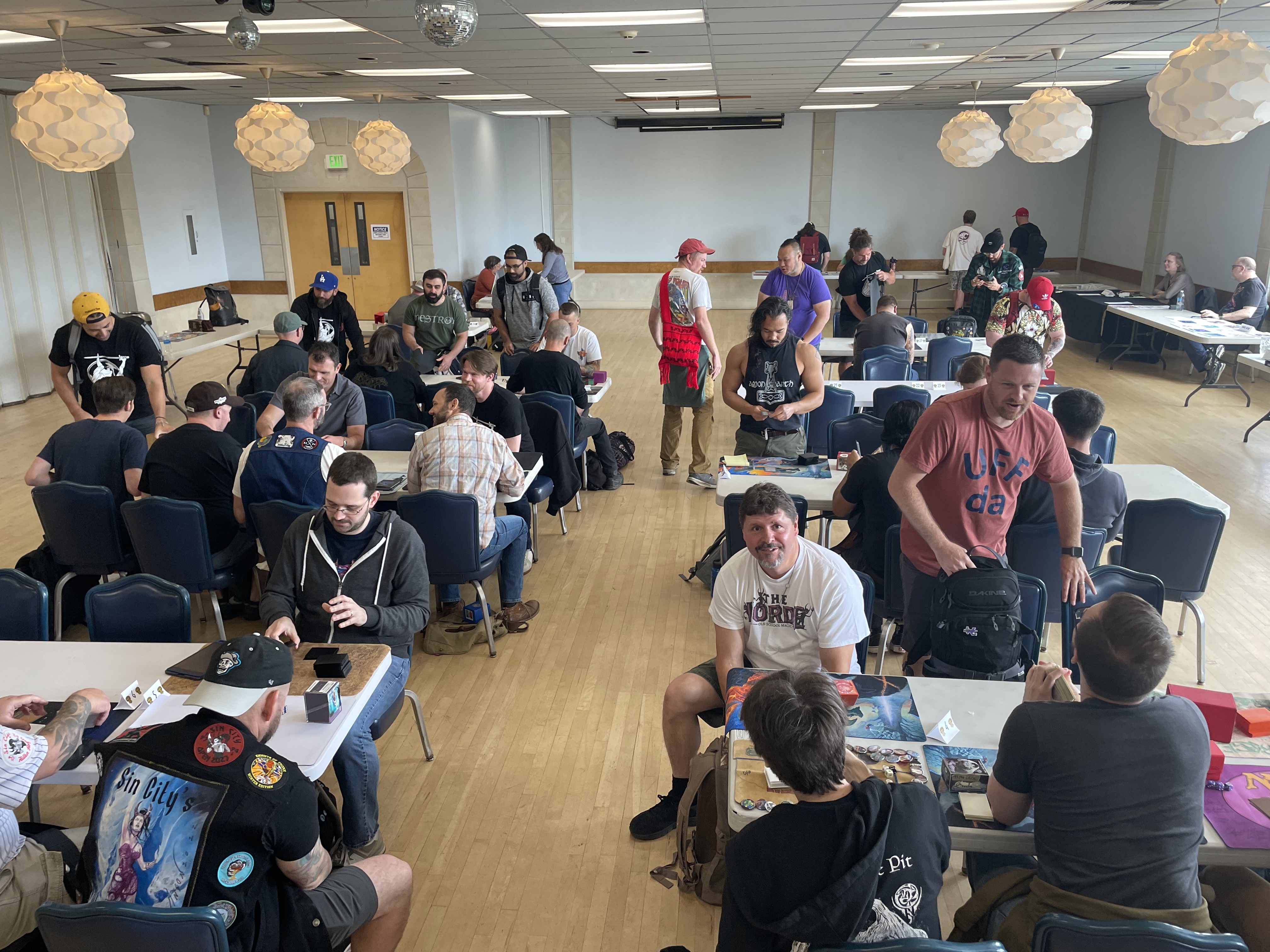 Players begin sitting down for Round 1.
