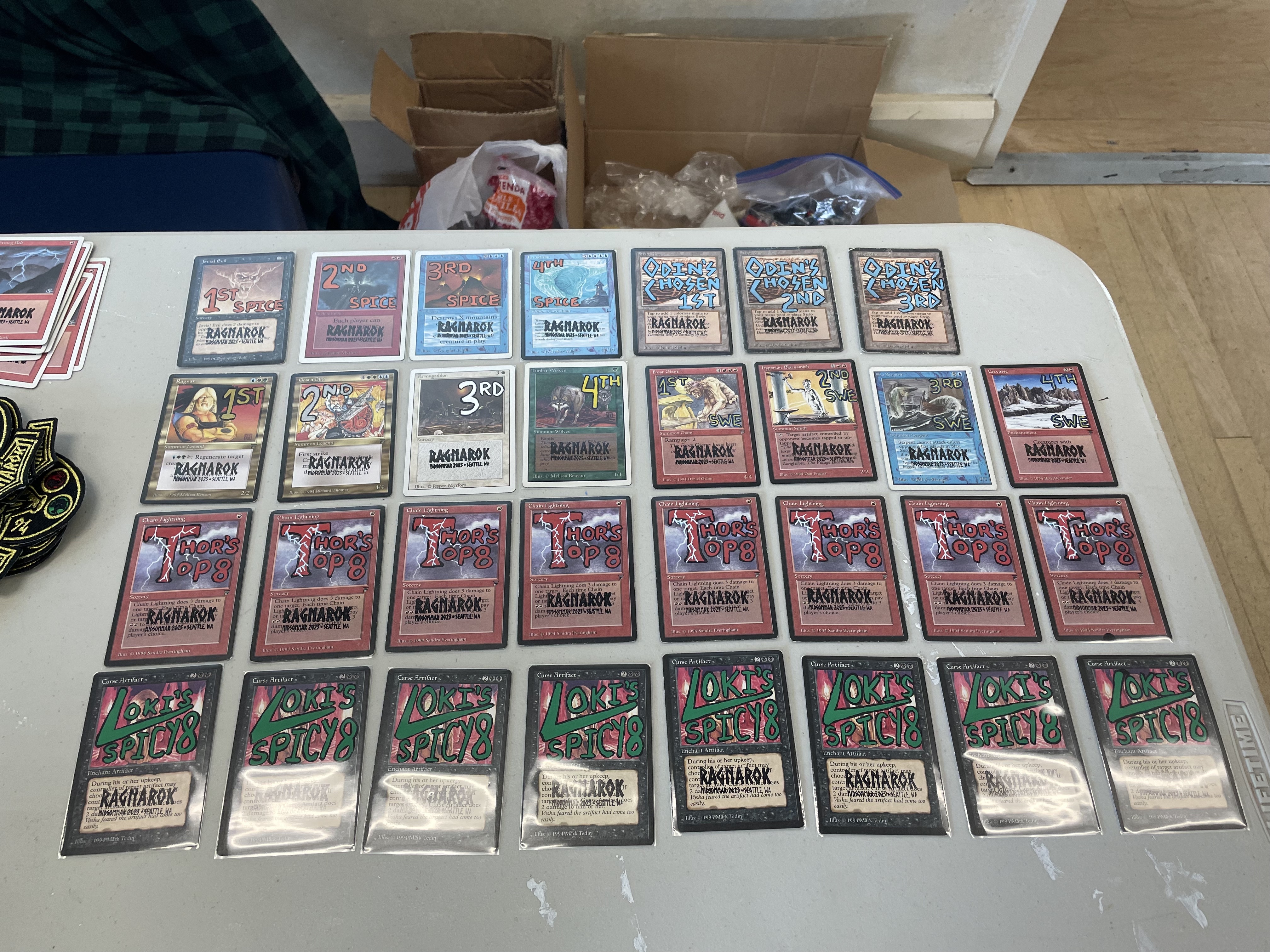 The event also featured Spice prizes, as well as three prizes for my favorite three decks called "Odin's Chosen." These were simply the decks I liked best, which is a combination of a spicy but well-performing deck, aesthetics choices for cards and especially alters, and simply arranging your deck photo in a pleasing way. I intend to continue doing something like this at all my events moving forward.