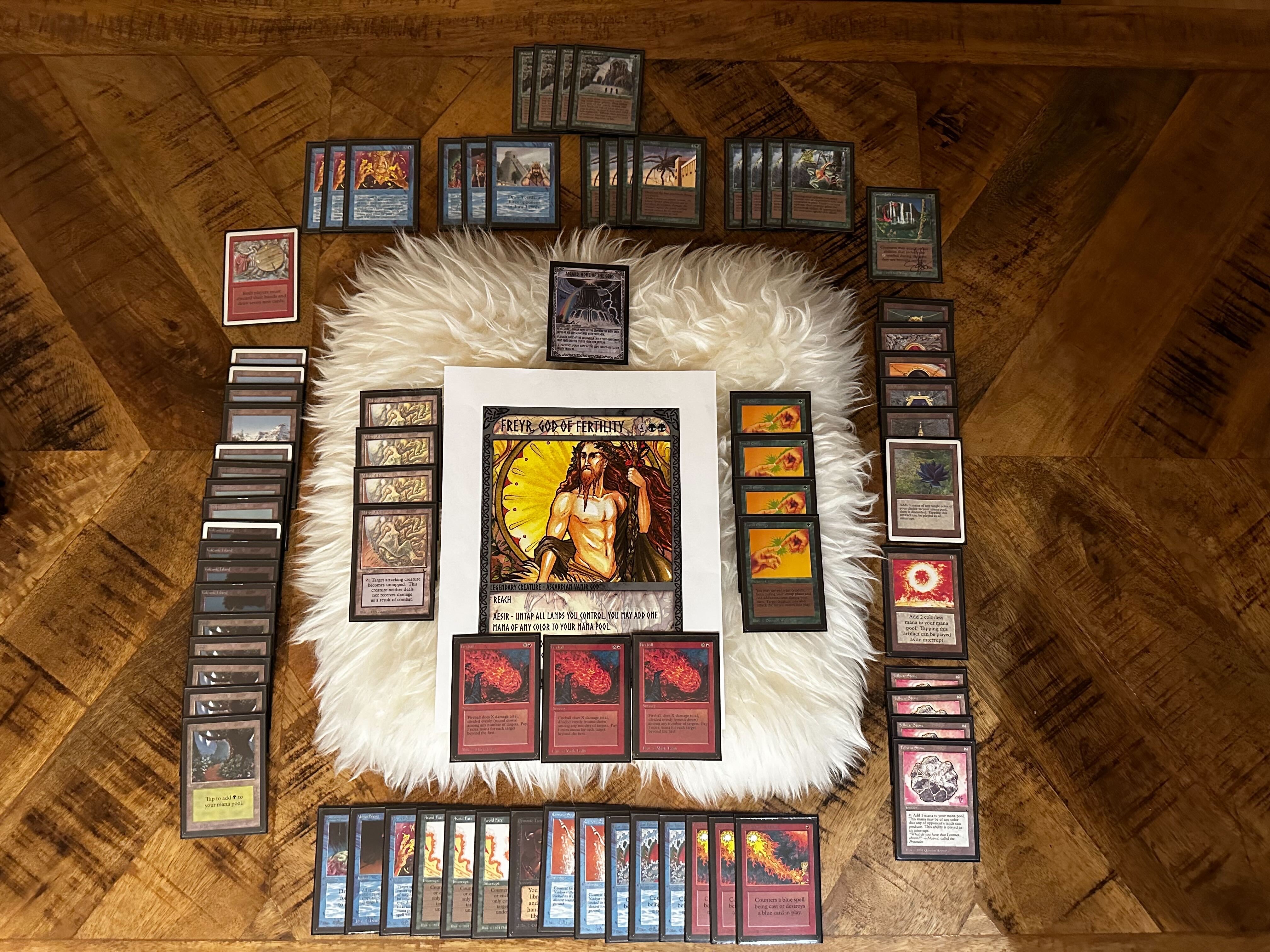 The other combo strategy involved Heimdall's level 2 Favor ability, meaning you didn't need to go as far as summoning Heimdall to use it. His level 2 Favor ability allows you to draw a card any time your opponent draws a card until your next upkeep. This is very powerful, but requires building around. I had thought about draw 7's and Howling Mine with this ability, and decided they were fine. There are only 2 draw 7's, and if you want to use Heimdall to break symmetry on Howling Mine, that seems great. However, I forgot about Winds of Change. While it's more situational because your opponent might not have many cards, it's only 1 mana, and you can play 4 of them. Combined with 2 draw 7's, that's an opportunity for a lot of cards. Tying the room together is Fastbond, allowing you to deploy a huge amount of mana from all those cards you draw, and get yourself into a finishing blow from a Fireball or similar effect. Quinn came up with this, and shared it with Danny, who helped dial everything in. While extremely powerful and capable of a turn 1 kill (well, technically turn 2, but the line to do this involves Time Walk on turn 1), this combo can fizzle, and opponents can strategically mulligan down low to effectively stop the deck from functioning (unless you have a draw 7).